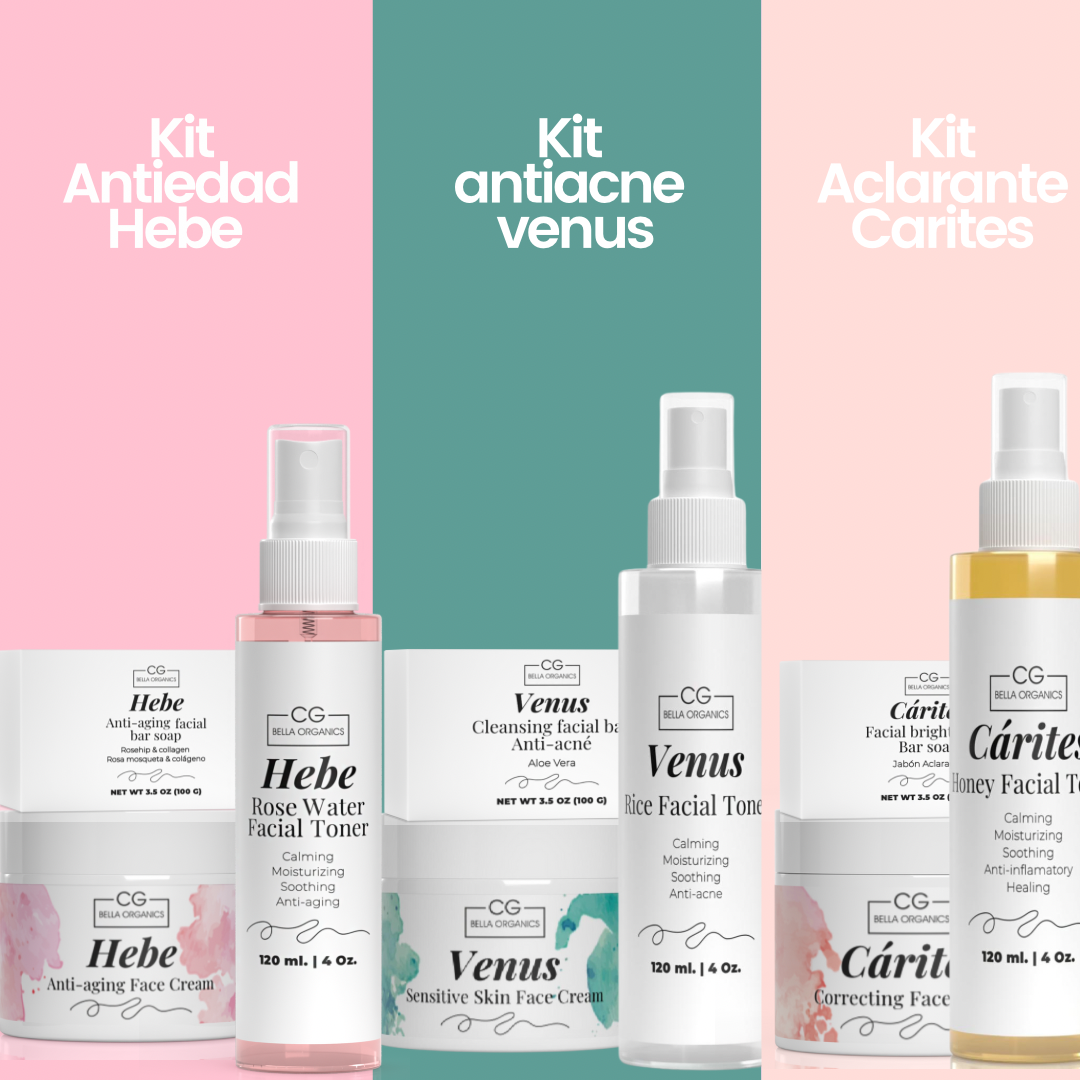 Diseñado para transformar tu rutina de cuidado de la piel, este kit de tres pasos incluye un jabón facial delicado, una crema hidratante rica y un tónico refrescante, todos formulados con ingredientes naturales y potentes.